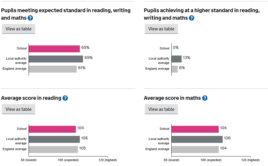 Attainment outcomes for KS2 pupils in 2023/24 can be found below or on the DfE Compare School and College Performance website here.